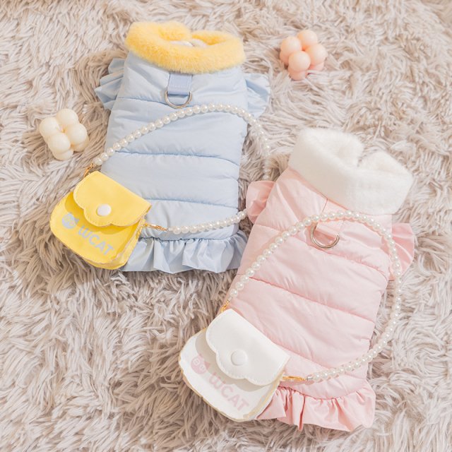 Cozy Plush Pet Collar Coat & Jumpsuit with Shoulder Bag — Fall/Winter